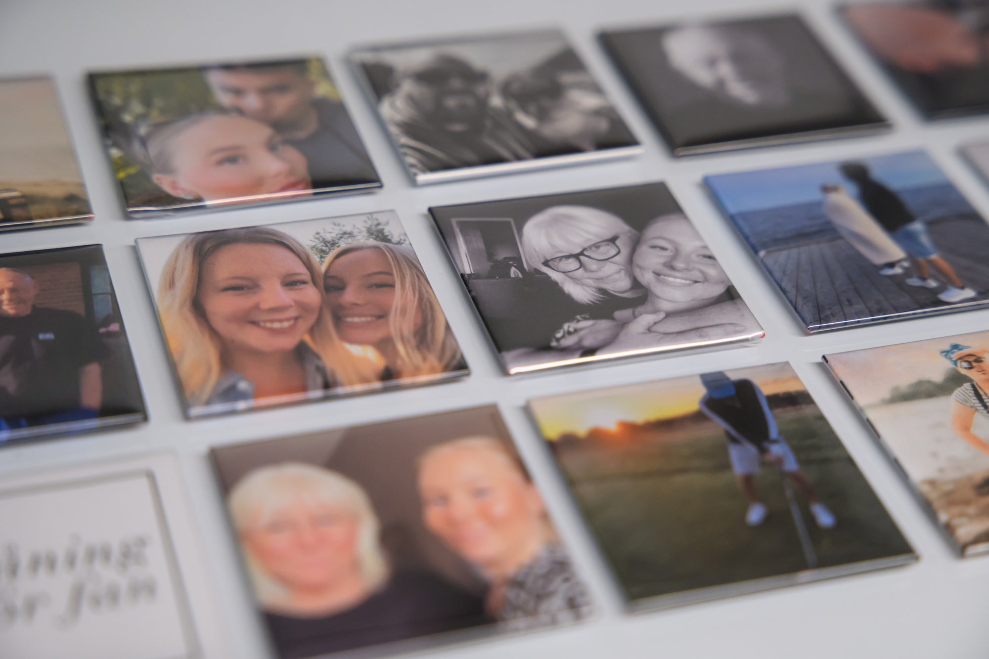 Skriv ut dina minnen på fyrkantiga foto magneter.